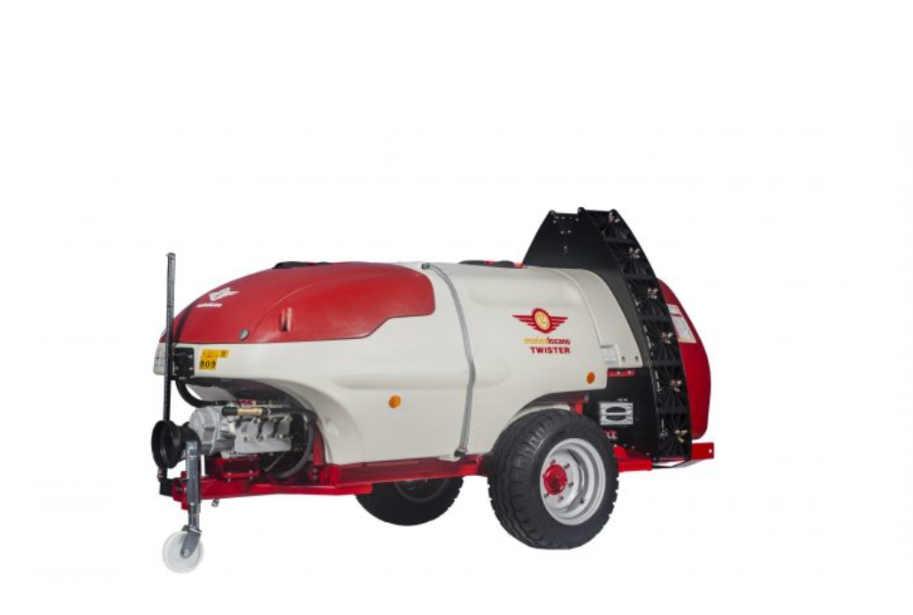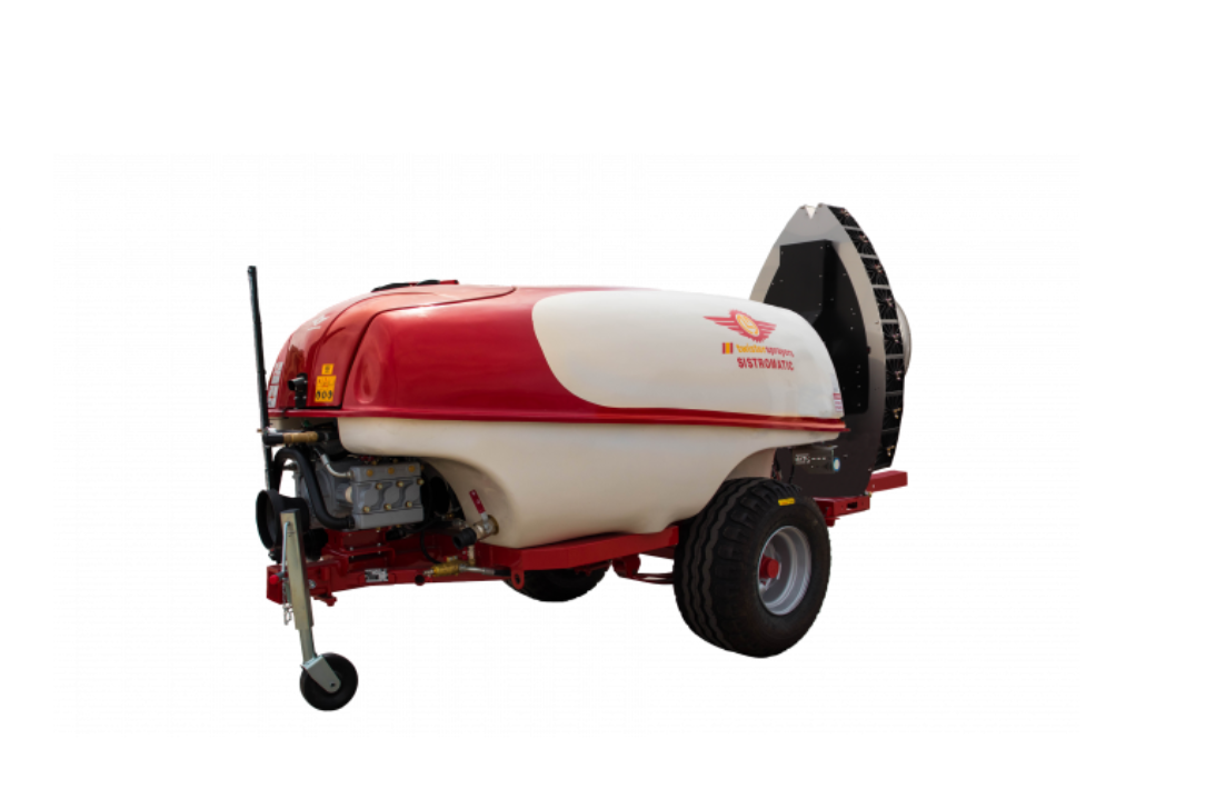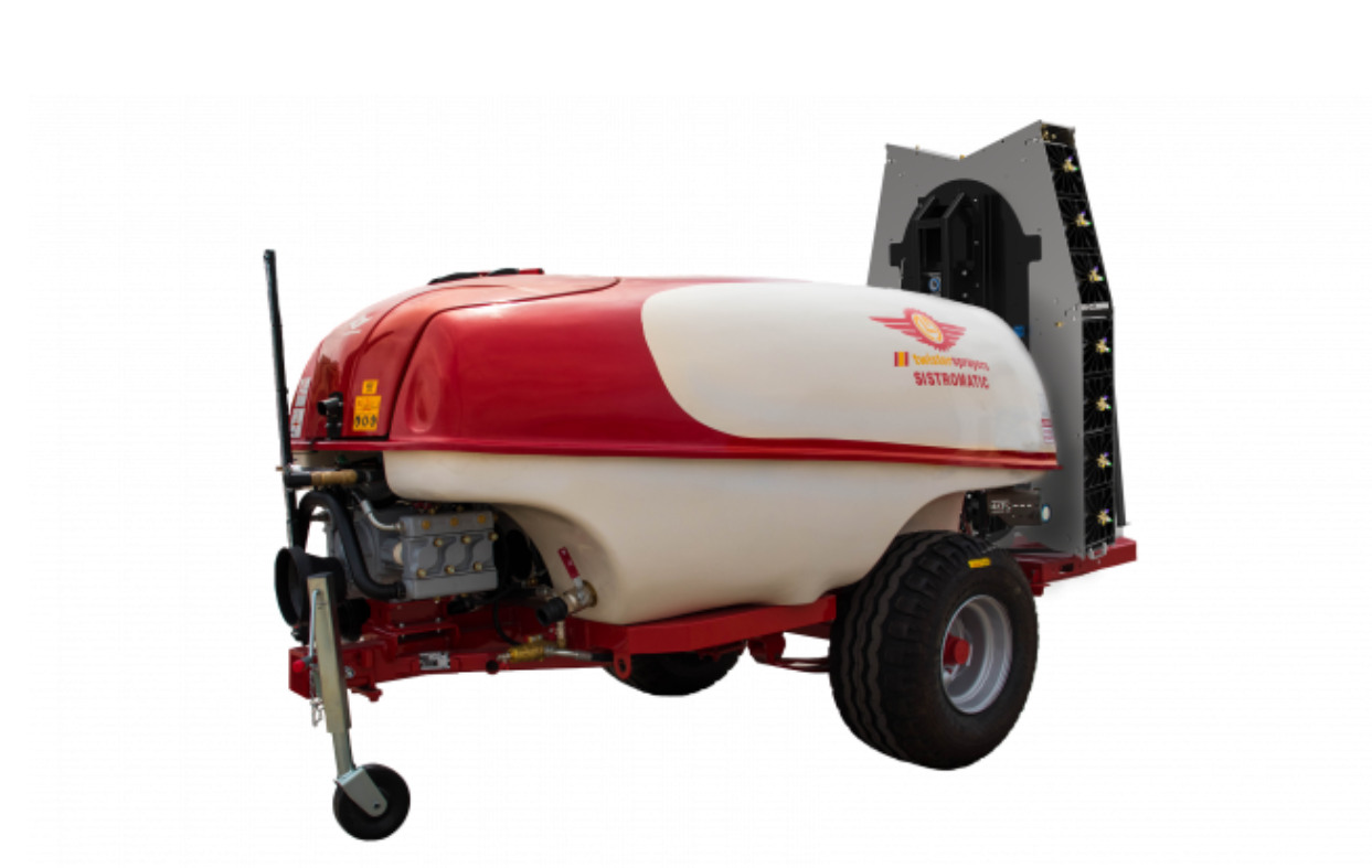Sprayer specifically designed for trellis vineyards. Allows treatment on 4 ½ sides of the vineyard in each pass