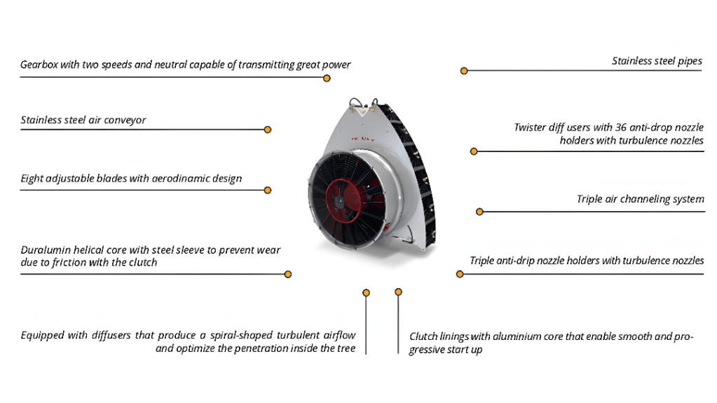 With its strong airflow system and durable construction, the sprayer ensures deep, uniform coverage throughout the entire canopy—improving treatment efficiency and crop protection while reducing chemical waste. It’s a reliable and efficient solution for growers who require both power and versatility in challenging orchard settings.