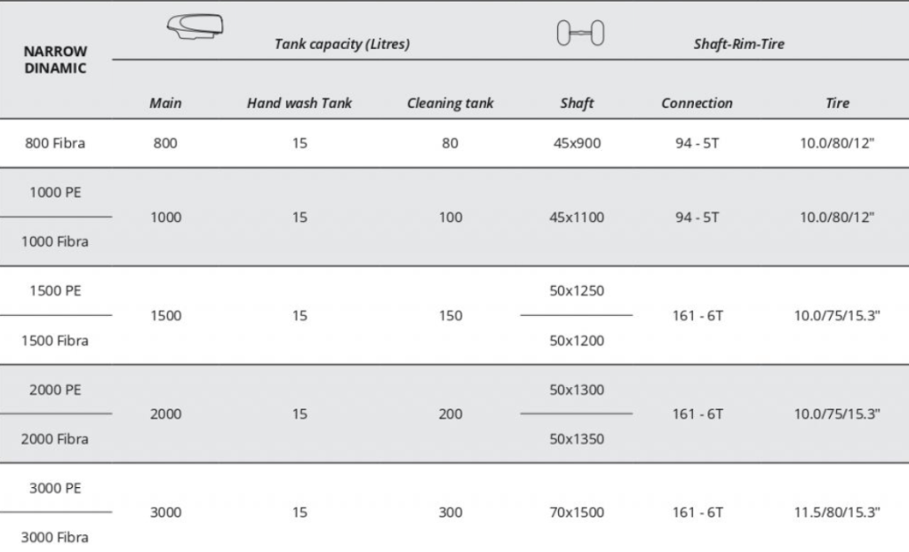 800, 1000, 1500, 2000 and 3000 litre