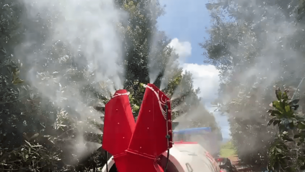 A pump specifically designed for air blast sprayers. This pump is mounted with a reduction shaft and a through shaft: the through shaft allows us to directly transmit the revolutions from the tractor’s PTO to the air unit, and the reduction gear reduces the pump’s crankshaft revolutions, reducing power absorption and therefore fuel consumption and pump wear.
