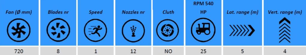 Twister diffusers produce a turbulent, spiral-shaped airflow that moves the leaf mass, avoiding the shielding effect and effectively penetrating the interior of the tree.