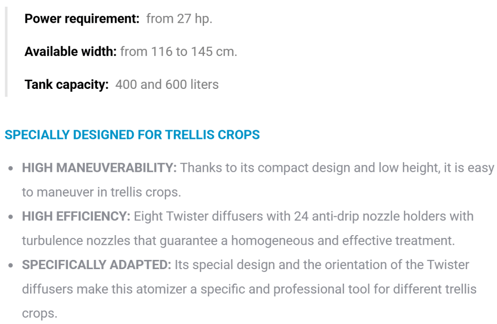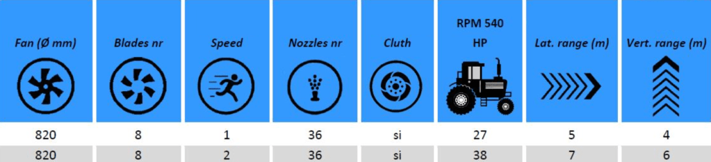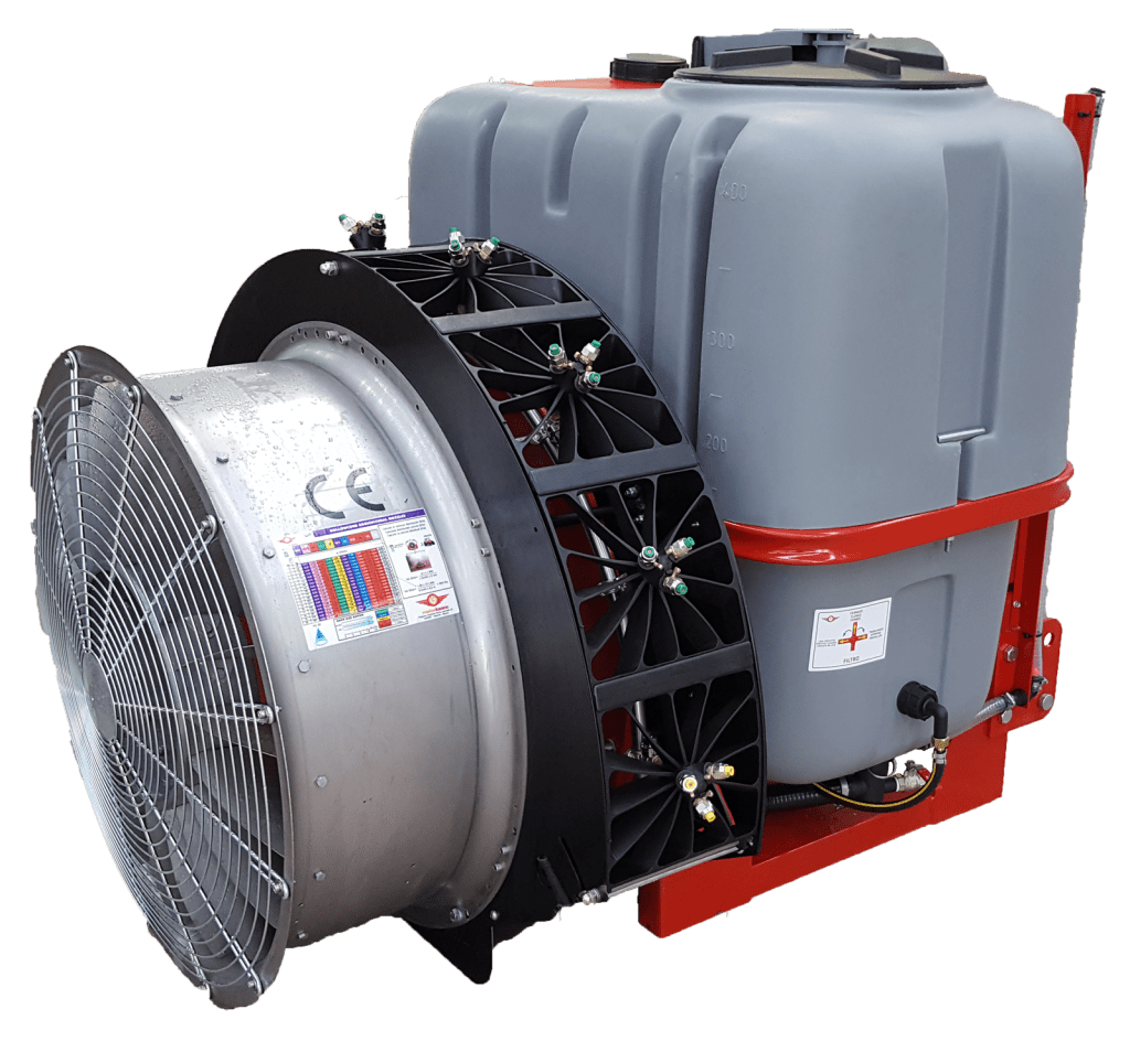 Twister diffusers produce a turbulent, spiral-shaped airflow that moves the leaf mass, avoiding the shielding effect and effectively penetrating the interior of the tree.