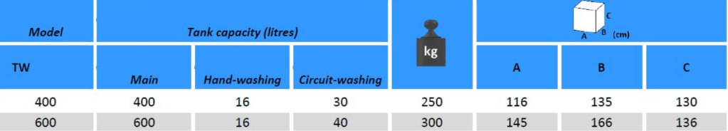 - Main polyethylene tank with level indicator