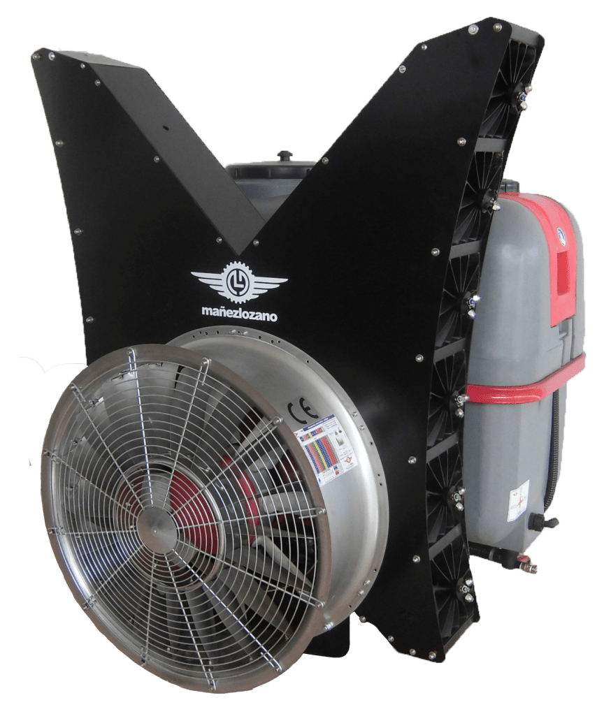 - Mañez y Lozano Ø820 mm fan with stainless steel nozzles and counter-propeller with 18 blades, which guarantee a homogeneous distribution of the air volume.